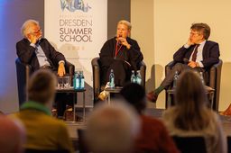 Der offizielle Start im Lichthof des Albertinum setzte den Ton für die folgenden Tage. Nach der Begrüßung durch Prof. Dr. Hans Vorländer und Bürgermeisterin Annekatrin Klepsch eröffnete Prof. Dr. Christoph Möllers mit seiner Keynote die Summer School. Die anschließende Podiumsdiskussion zur Kunstfreiheit brachte Perspektiven aus Museum, Theater und Stadtgesellschaft zusammen. Es diskutierten:
